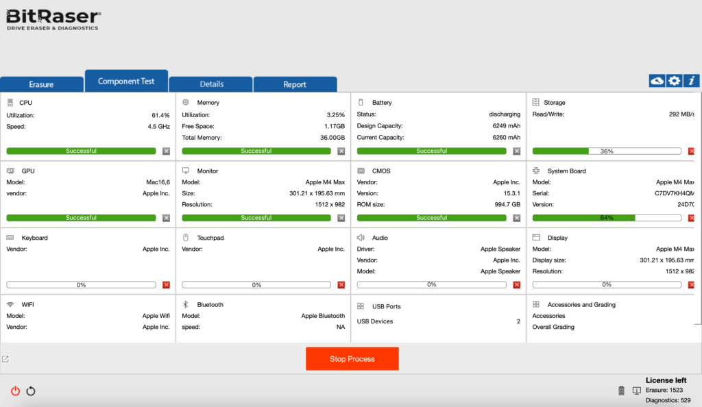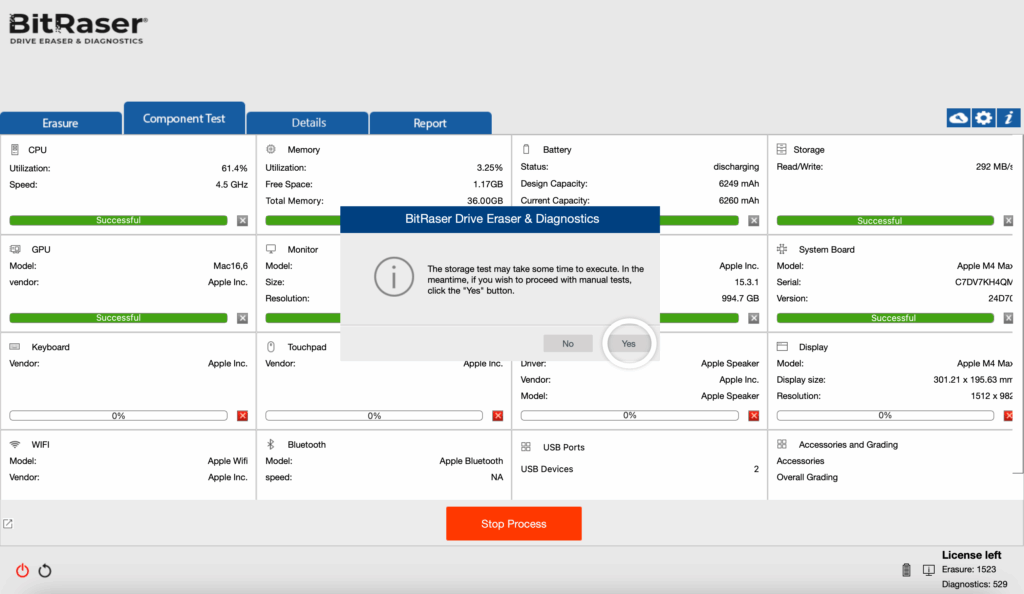 Immagine 5: Test automatici in corso con BitRaser Mac Diagnostics
