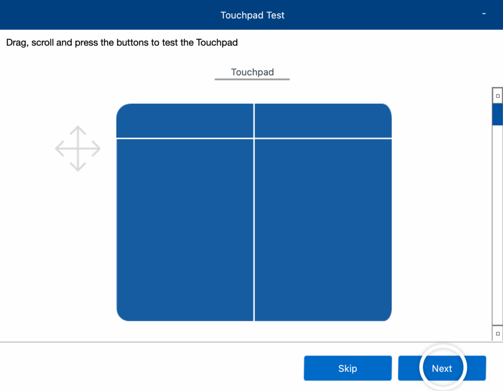 Step 5: Successivamente viene testato il touchpad. Premi su entrambi i lati del touchpad e verifica i risultati sullo schermo, quindi clicca su ‘Next’ (vedi Immagine 8).